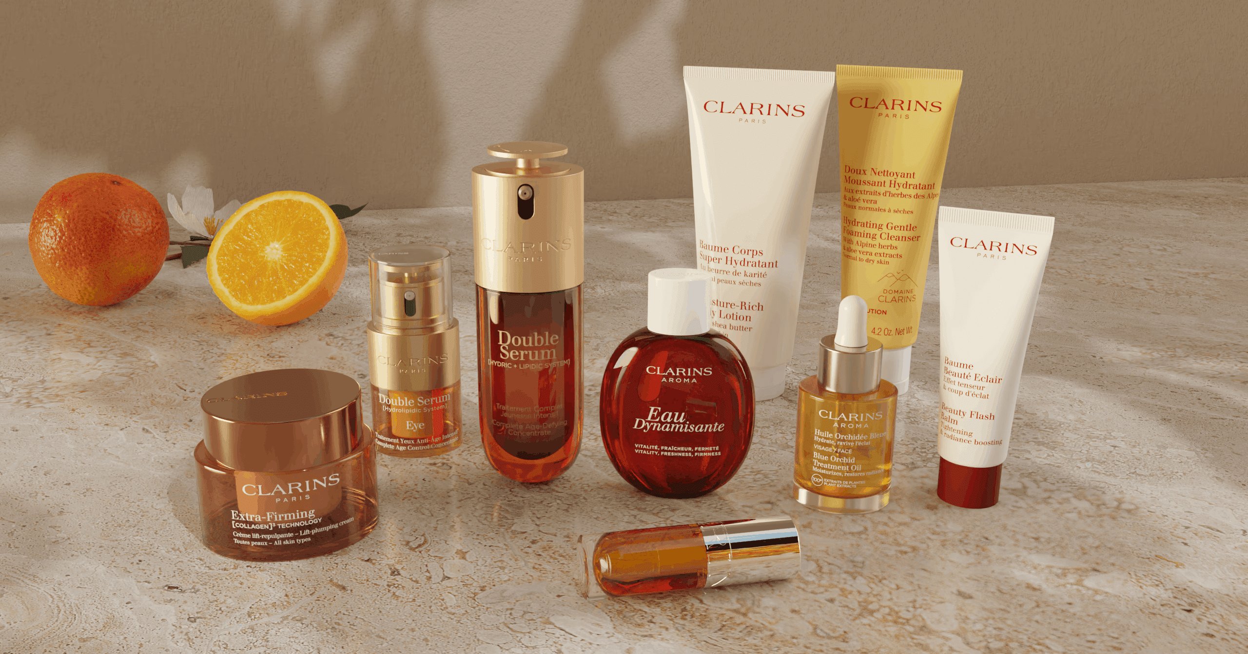 Clarins a transformé plus de 800 produits - variations et miniatures incluses - en Digital Twins 3D détaillés.