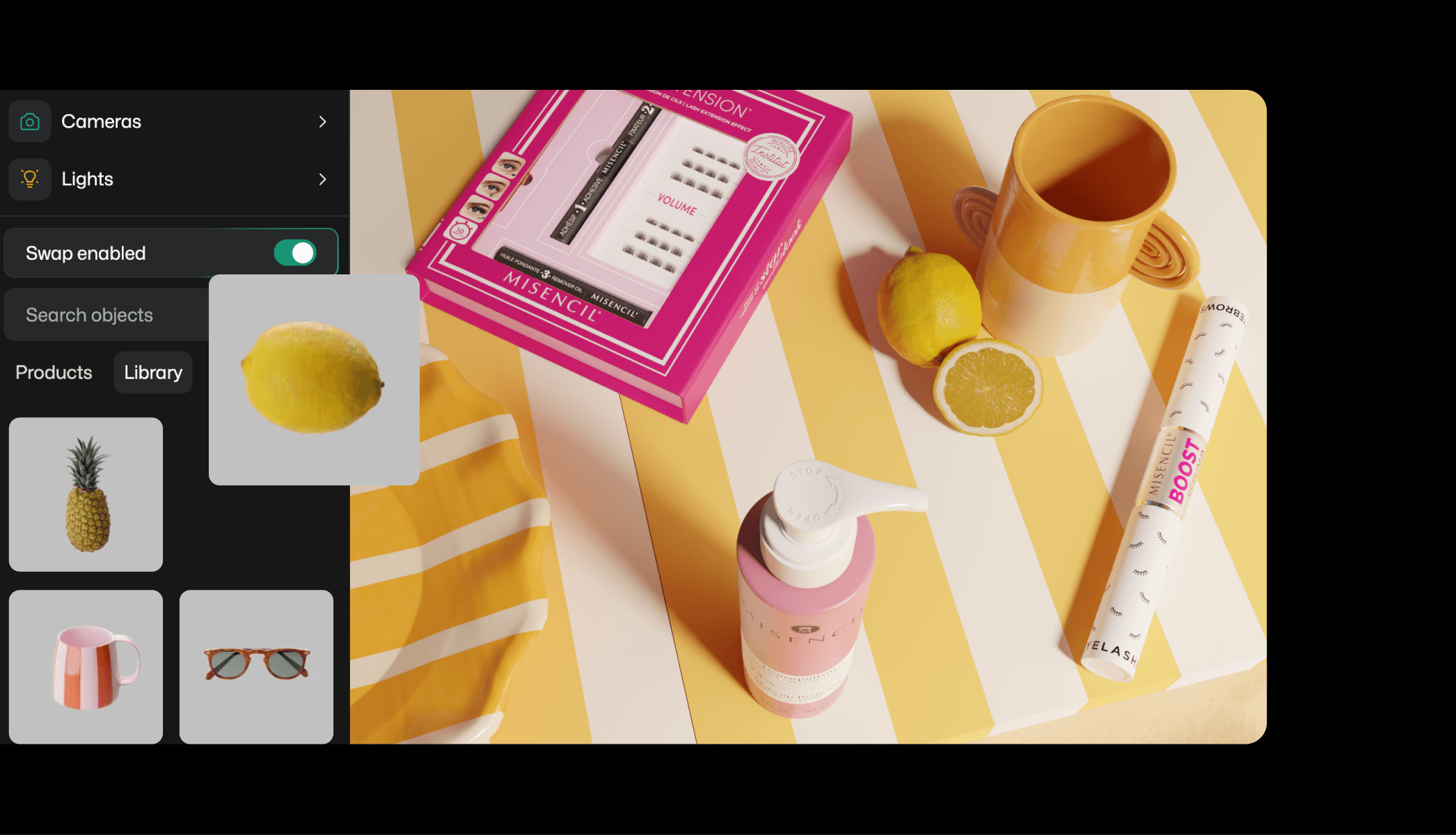 The process started with Omi creating Digital Twins of Misencil’s products. These photorealistic 3D models capture every detail, from packaging textures to label finishes.